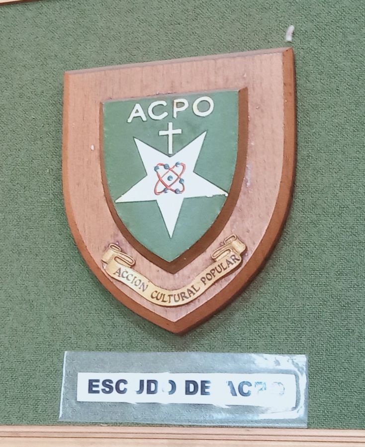 El escudo de ACPO (Acción Cultural Popular), uno de los elementos más representativos que se exhiben en el Museo Radio Sutatenza, simboliza los valores y principios que guiaron esta organización en su misión de transformar las vidas de millones de campesinos colombianos a través de la educación y la cultura.